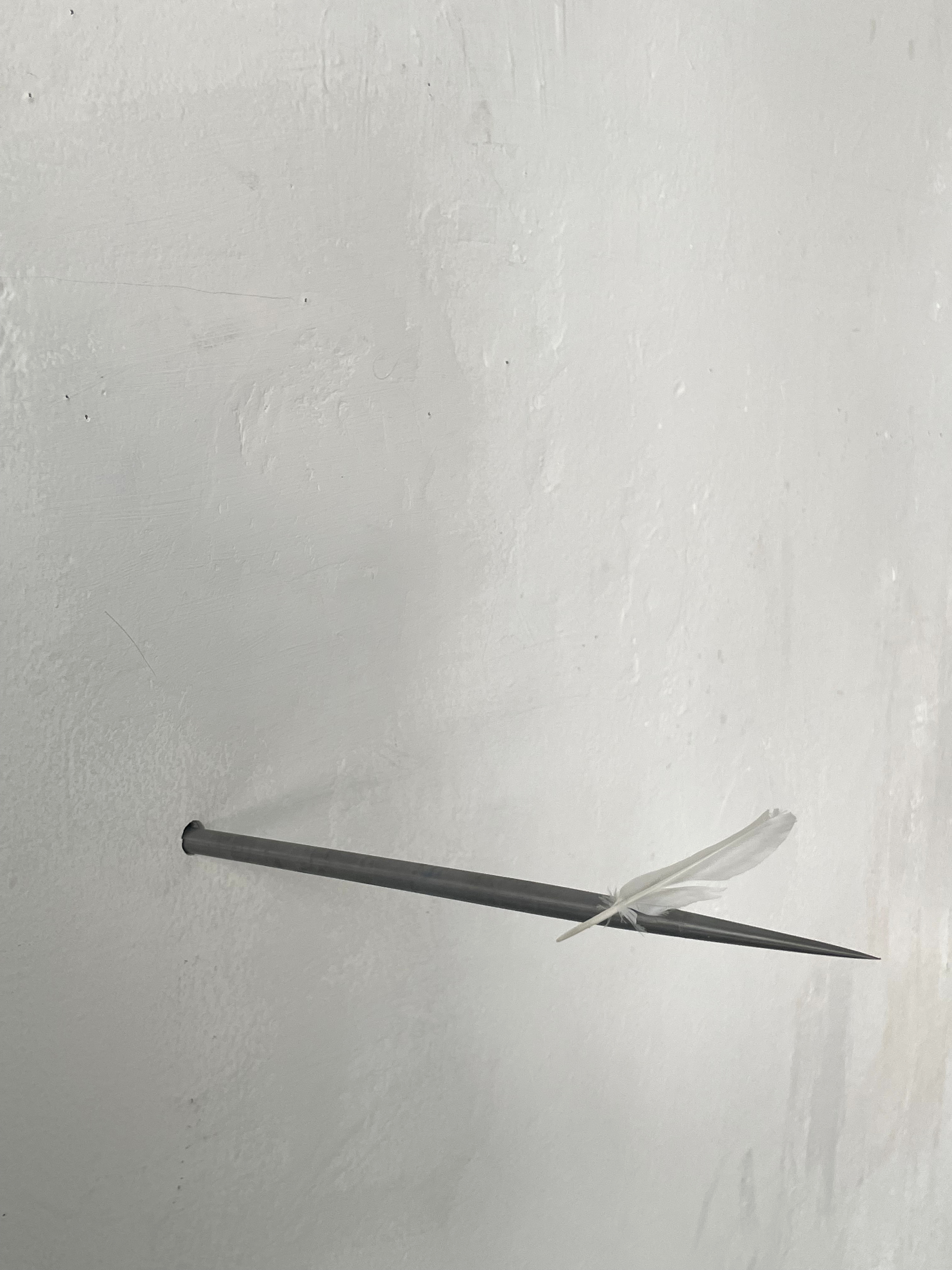 dove feathers, cotton, plaster, velvet, maple wood, silvered plate, lodestone,